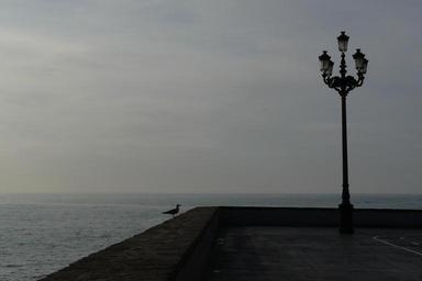 Keywords: lantern street lamp historic street lighting lighting sea travel sky holiday still life still dove bird animal wall quay wall abendstimmung atmosphere darkness silhouette last light mood