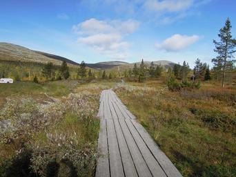 Keywords: lapland duckboards landscape nature autumn finnish sky forest terrain nature photo blue clouds fall colors tourism camping hike