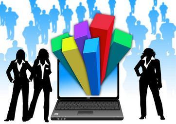 Keywords: laptop monitor businesswoman businessman group management style leadership margin success arrow top blue green upward internet www computer personal notebook aspiring successful profit victorious win boom