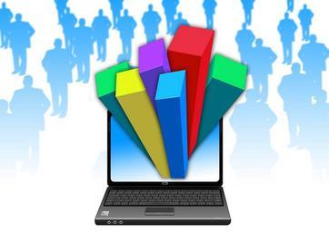 Keywords: laptop monitor businesswoman businessman group management style leadership margin success arrow top blue green upward internet www computer personal notebook aspiring successful profit victorious win boom