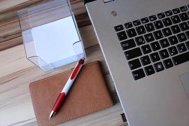 Keywords: laptop notebook desk workplace pen