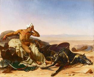 | Keywords: L'Arabe pleurant son coursier by Jean-Baptiste Mauzaisse - BMA.jpg Artwork Creator Jean-Baptiste Mauzaisse fr L'Arabe pleurant son coursier en A painting depicting an Arab man grieving over the death of his horse The scene was inspired by Charles Hubert Millevoye's 1808 poem Le Tombeau de coursier Chant de L'Arabe after 1812 Oil on canvas in 32 39 Institution Birmingham Museum of Art object history exhibition history credit line accession number Sean Pathasema PermissionOTRS 2011083010019522 PD-old-100 Jean-Baptiste Mauzaisse Arab people in art Dead_horses_in_art Black horses in art Sadness_in_art 19th-century_oil_on_canvas_paintings French paintings in the Birmingham Museum of Art Uploaded with UploadWizard |