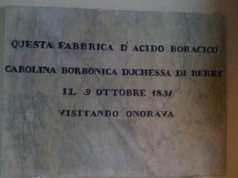 Keywords: Larderello Duchessa di Berry.JPG Duchessa di Berry agli stabilimenti di Larderello own Mmm448 2010-08 Larderello Princess Caroline of Naples and Sicily Plaques referencing 1831 Plaques in Tuscany Larderello 9 October 1831