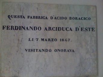Keywords: Larderello Ferdinando d'Este.JPG Arciduca Ferdinando d'Este agli stabilimenti di Larderello own Mmm448 2010-08 Larderello Archduke Ferdinand Karl Joseph of Austria-Este Plaques referencing 1847 Plaques in Tuscany Larderello 7 March 1847