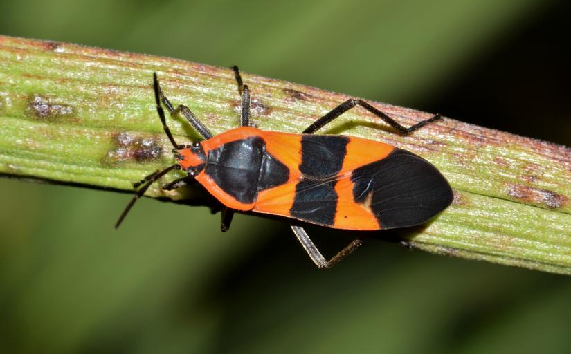 Keywords: large milkweed bug bug insect black and orange winged insect flying insect close up macro creature animal entomology biology arthropod oncopeltus fasciatus