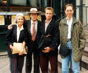 | Keywords: Lars Jacob & production team 1993.jpg en Lars Jacob with Swedish Public Relations agents Maud Winkler left Thérèse Ryde r and Production Assistant Mr Janne Stenberg meeting for their Mae West Centenary as released by image creator Lars Jacob Prod<br>Place Berns Berzelii Park Stockholm Sweden User EmilEikS/Template Southerly Clubs Kaan Keskiner for Stage Freight Lars Jacob Prod 1993-08 Southerly Clubs Image Archives Stage Freight Lars Jacob modelling performances shows and direction Thérèse Ryde Reunions in the von Reis Family Janne Stenberg Maud Winkler Group photographs Business meetings Men with hats Group portraits with 4 persons Mae West Centenary Berns |