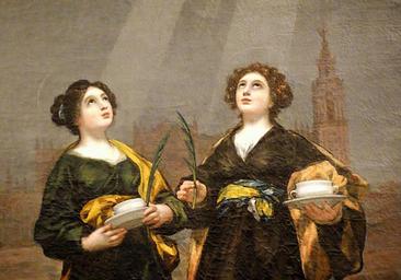 | Keywords: Las santas Justa y Rufina, de Francisco de Goya. Detalle. (Sacristía de los Cálices de la catedral de Sevilla).jpg Detalle del cuadro de las Santas Justa y Rufina El cabildo catedralicio sevillano le encargó este cuadro a Goya en 1817 y por mediación de Agustín Ceán Bermúdez que era un erudito y escritor de arte y amigo personal de Goya El cuadro estaba destinado al altar de la Sacristía de los Cálices de la catedral de Sevilla España donde aún permanece Y conviene señalar que las santas alfareras Justa y Rufina que son las patronas de Sevilla fueron martirizadas por haberse negado a adorar una imagen de la diosa Venus y siempre suelen ser representadas junto a objetos de barro como símbolo de su profesión y con las palmas del martirio En esta obra un león lame mansamente el pie de Santa Rufina herido por haberla forzado a caminar desde la sierra hasta Sevilla y esta ciudad aparece al fondo destacándose la Torre de la Giralda de la catedral sevillana que según la tradición quedó en pie por la intervención milagrosa de estas mártires durante el terremoto que asoló Sevilla en 1504 1817 oil canvas Size cm 177 309 Institution Catedral de Santa María de la Sede de Sevilla Sacristía de los Cálices de la catedral de Sevilla https //www museodelprado es/coleccion/galeria-on-line/galeria-on-line/obra/santa-justa-y-santa-rufina/ object history exhibition history credit line accession number own PD-old-100 cc-by-sa-4 0 Santas Justa y Rufina Francisco de Goya Paintings of ceramics by Goya |