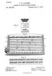 | Keywords: Latimer Pat252386 FirstPage.jpg Erste Seite Zeichnung des US-Patents 253 386 Process of manufacturing Carbons von Lewis H Latimer http //www google com/patents id 5nBWAAAAEBAJ pg PA1 v onepage q f false PatentUS 1882 1882 Lewis H Latimer 1848-1928 PD-old Original upload log de wikipedia Latimer+Pat252386+FirstPage jpg 2009-01-06 13 50 Hgn-p 2080×3009× 883748 bytes <nowiki> Information Erste Seite Zeichnung aus US-Patent 253 386 Lewis H Latimer US-Patent von 1882 JPG-File-Creator User hgn-p; Orginal Lewis H Latimer 1882 gest 1928 1882 Andere Versionen </nowiki> History of electricity Incandescent light bulbs Lewis Howard Latimer |