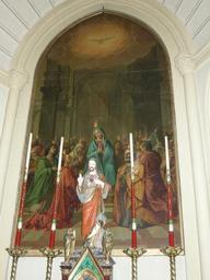 | Keywords: Latin Patriarch of Jerusalem2914.JPG Visit in the Concathedral of the Latin Patriarch of Jerusalem the Holy Spirit altar the painting placed above the altar depicts the Holy Spirit and celebration of the first Pentecost with the Virgin Mary surrounded by Saints Peter and John In front 4 majestic candleholders decorated with ornate gilded gold and a tabernacle with a statue of the Agonizing Heart of Jesus The altar is flanked by statues of St Anthony of Padua St John of God and St Jean-Baptiste de la Salle all founders of religious Orders and the Statue of Mary of Nazareth all outside the photo own self taken 2009-02-13 Yoav Dothan Own work all rights released Public domain Altars in Israel Jerusalem Holy Name Holy Spirit altar Holy Name of Jesus Concathedral Jerusalem Holy Spirit altar Holy Spirit Jerusalem Holy Name Holy Spirit altar Statues of Jesus Jerusalem Holy Name Holy Spirit altar Paintings of Virgin Mary Jerusalem Holy Name Holy Spirit altar Statues of Jesus in Israel |