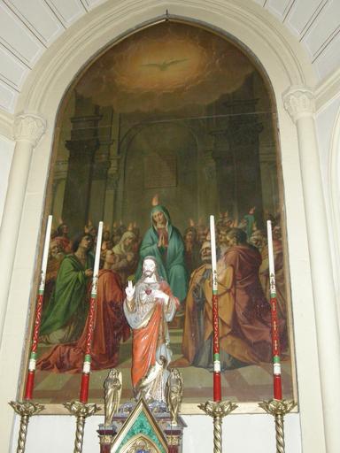 Keywords: Latin Patriarch of Jerusalem2914.JPG Visit in the Concathedral of the Latin Patriarch of Jerusalem the Holy Spirit altar the painting placed above the altar depicts the Holy Spirit and celebration of the first Pentecost with the Virgin Mary surrounded by Saints Peter and John In front 4 majestic candleholders decorated with ornate gilded gold and a tabernacle with a statue of the Agonizing Heart of Jesus The altar is flanked by statues of St Anthony of Padua St John of God and St Jean-Baptiste de la Salle all founders of religious Orders and the Statue of Mary of Nazareth all outside the photo own self taken 2009-02-13 Yoav Dothan Own work all rights released Public domain Altars in Israel Jerusalem Holy Name Holy Spirit altar Holy Name of Jesus Concathedral Jerusalem Holy Spirit altar Holy Spirit Jerusalem Holy Name Holy Spirit altar Statues of Jesus Jerusalem Holy Name Holy Spirit altar Paintings of Virgin Mary Jerusalem Holy Name Holy Spirit altar Statues of Jesus in Israel |