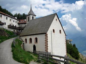 Keywords: latsch italy sky clouds scenic buildings church faith religion chapel architecture trees nature outside country countryside