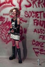 Keywords: laughing graffiti spray paint young dreadlocks fun backdrop girl boots woman anarchy skirt skull t-shirt crazy scream arrogant subculture