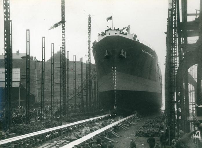 Keywords: sunderland shipbuilding british princess britishprincess sir james laing & sons ltd sirjameslaingsonsltd ship launches shiplaunches cargo ship cargoship deptford sunderland deptfordsunderland shipyard outdoor View of the tanker ‘British Princess’ sliding down the ways at the shipyard of Sir James Laing & Sons Ltd, Deptford, Sunderland, 30 April 1946 (TWAM ref. DS.LG/4/PH/4/1). Tyne & Wear Archives is proud to present a selection of images from its Sunderland shipbuilding collections. The set has been produced to celebrate Sunderland History Fair on 7 June 2014. It's a reminder of the thousands of vessels launched on the River Wear and the many outstanding achievements of Sunderland’s shipyards and their workers. These photographs reflect Sunderland’s history of innovation in shipbuilding and marine engineering from the development of turret ships in the 1890s through to the design for SD14s in the 1960s. The Sunderland shipbuilding collections are full of fascinating stories. Some of these are represented in this set, such as the ‘Rondefjell’, launched in two halves on the River Wear by John Crown & Sons Ltd and then joined together on the River Tyne. The set also shows the vital part that Sunderland’s shipbuilding industry played during the First World War. William Doxford & Sons Ltd built Royal Naval destroyers such as HMS Opal, which served in the Battle of Jutland, while other yards constructed cargo ships to help keep these shores supplied. (Copyright) We're happy for you to share these digital images within the spirit of The Commons. Please cite 'Tyne & Wear Archives & Museums' when reusing. Certain restrictions on high quality reproductions and commercial use of the original physical version apply though; if you're unsure please email archives@twmuseums.org.uk View of the tanker ‘British Princess’ sliding down the ways at the shipyard of Sir James Laing & Sons Ltd, Deptford, Sunderland, 30 April 1946 (TWAM ref. DS.LG/4/PH/4/1). Tyne & Wear Archives is proud to present a selection of images from its Sunderland shipbuilding collections. The set has been produced to celebrate Sunderland History Fair on 7 June 2014. It's a reminder of the thousands of vessels launched on the River Wear and the many outstanding achievements of Sunderland’s shipyards and their workers. These photographs reflect Sunderland’s history of innovation in shipbuilding and marine engineering from the development of turret ships in the 1890s through to the design for SD14s in the 1960s. The Sunderland shipbuilding collections are full of fascinating stories. Some of these are represented in this set, such as the ‘Rondefjell’, launched in two halves on the River Wear by John Crown & Sons Ltd and then joined together on the River Tyne. The set also shows the vital part that Sunderland’s shipbuilding industry played during the First World War. William Doxford & Sons Ltd built Royal Naval destroyers such as HMS Opal, which served in the Battle of Jutland, while other yards constructed cargo ships to help keep these shores supplied. (Copyright) We're happy for you to share these digital images within the spirit of The Commons. Please cite 'Tyne & Wear Archives & Museums' when reusing. Certain restrictions on high quality reproductions and commercial use of the original physical version apply though; if you're unsure please email archives@twmuseums.org.uk