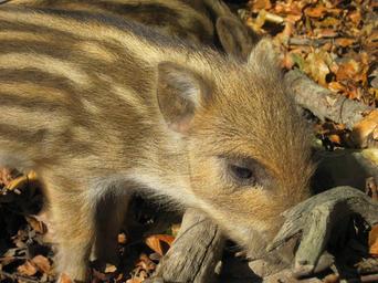 Keywords: launchy boar young animal nature forest mammal head drawing rooting sun autumn leaves