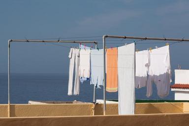 Keywords: laundry dry clothes line hang budget clothes peg leash color garments clothing sky out depend washed blue white orange grey mediterranean balcony