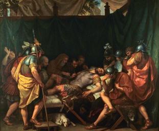 | Keywords: Laurent Pecheux - La mort d'Epaminondas.jpg The death of Epaminondas De dood van Epaminondas La morte di Epaminonda 1795 oil canvas cm 138 153 Musée des beaux-arts Chambéry Accession number http //www artsdanslacite fr/musee-imaginaire-oeuvre php oeuvre 16 Other versions PD-old-100 Epaminondas's death Deathbeds in art Dying in art |