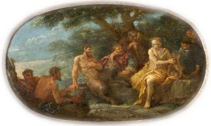 | Keywords: Lauri, Filippo - King Midas Judging the Musical Contest between Apollo and Pan.jpg Artwork Creator Filippo Lauri other date secondhalf other date century 17 Oil on copper size cm 13 21 Private collection Location object history credit line http //www wga hu/html/l/lauri/kingmida html accession number WGA link 12507 http //www wga hu/art/l/lauri/kingmida jpg http //www wga hu/html/l/lauri/kingmida html PD-old-100 painting mythological Italian 1651-1700 Comment in EXIF-Tags <small>LAURI Filippo b 1623 Roma d 1694 Roma King Midas Judging the Musical Contest between Apollo and Pan - Oil on copper 13 x 21 cm Private collection Apollo challenged Pan to a musical contest The contest was judged by the mountain god Tmolus and Apollo was declared victor King Midas who happened to be present disagreed with the verdict and was rewarded with ass's ears by Apollo There is another signed version of this subject by the artist also in a private collection --- Keywords -------------- Author LAURI Filippo Title King Midas Judging the Musical Contest between Apollo and Pan Time-line 1651-1700 School Italian Form painting Type mythological</small> Filippo Lauri King Midas Judging the Musical Contest between Apollo and Pan 17th-century mythological paintings King Midas Paintings of Apollo Pan mythology Competition between Pan and Apollo Baroque paintings of mythology Baroque paintings of people Oil paintings of people Paintings in unidentified private collections Oval paintings of people 17th-century oil on canvas paintings 1651-1700 paintings in private collections WGA form painting WGA type mythological WGA School Italian WGA time period 1651-1700 Uploads by Mattes from external sources |