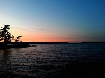 Keywords: park pink trees sunset lake canada nature water scenery rocks pretty colours peace laurie provincial