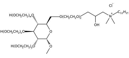| Keywords: Lauryl methyl gluceth-10 hydroxypropyl dimonium chloride.svg Chemical structure of lauryl methyl gluceth-10 hydroxypropyl dimonium chloride Own 12 31 8 July 2014 UTC Ed Edgar181 Quaternary ammonium compounds Chloride salts of organic compounds Glucosides Polyethers |