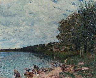 | Keywords: 'Lavandières Près de Champagne' by Alfred Sisley, 1879.jpg en Lavandières Près de Champagne by Alfred Sisley oil on canvas 60 by 73 cm 1879 Sotheby's Alfred Sisley 1879 1879 paintings by Alfred Sisley Paintings of the Seine by Alfred Sisley Paintings of Champagne-sur-Seine by Alfred Sisley Paintings of women doing laundry outdoors PD-old-100 |