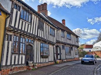 Keywords: lavenham half timbered house medieval facade building traditional vintage heritage historic architecture road car