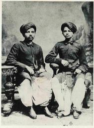 Keywords: Mahatma Gandhi (right) with his brother Laxmidas in 1886. Source: UH Manoa Library
