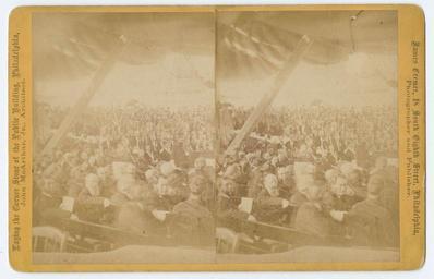 | Keywords: stereographs philadelphia streets broad street broadstreet city hall cityhall construction cornerstone public building publicbuilding james cremer jamescremer photo border Shows the crowd gathered for the ceremonious laying of the cornerstone of the Public Building, or City Hall, on Broad Street in Philadelphia, 1874. Accession number: P.2011.47.1727 Shows the crowd gathered for the ceremonious laying of the cornerstone of the Public Building, or City Hall, on Broad Street in Philadelphia, 1874. Accession number: P.2011.47.1727 |