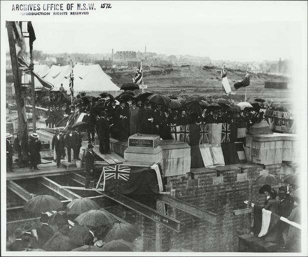 | Keywords: archives state records nsw staterecordsnsw newsouthwales blackandwhite sydney central station centralstation people umbrella ceremony women tent john see johnsee tower black and white Laying the foundation stone for Central Railway Station, Sydney Dated: 26/9/1903 Digital ID: 4481_a026_000947 Rights: www.records.nsw.gov.au/about-us/rights-and-permissions We'd love to hear from you if you use our photos. Many other photos in our collection are available to view and browse on our website using Photo Investigator. Laying the foundation stone for Central Railway Station, Sydney Dated: 26/9/1903 Digital ID: 4481_a026_000947 Rights: www.records.nsw.gov.au/about-us/rights-and-permissions We'd love to hear from you if you use our photos. Many other photos in our collection are available to view and browse on our website using Photo Investigator. |