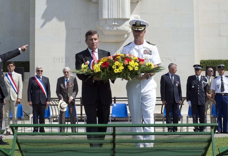 | Keywords: Laying a wreath 130816-N-EZ054-181.jpg en U S Ambassador to France and Monaco Charles Rivkin left and Capt Craig Clapperton commanding officer of the U S 7th Fleet flagship USS Mount Whitney LCC 20 lay a wreath during a ceremony at the Rhone American Cemetery in honor of the 69th anniversary celebration of allied troops landing in Provence during World War II This visit serves to continue U S 6th Fleet efforts to build global maritime partnerships with European nations and improve maritime safety and security U S Navy photo by Mass Communication Specialist Seaman Luis Chavez/Released 2013-08-16 Seaman Luis Chavez https //www dvidshub net/image/997492 130816-N-EZ054-181 2013-08-16 20 39 DRAGUIGNAN 1 FR PD-USGov-Military-Navy USS Mount Whitney LCC-20 Images from DoD uploaded by Fæ |