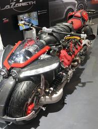 | Keywords: lazareth lm 847 mazerati v8 gsx-r 1000 gsxr1000 86th geneva international motor show 2016 86 salon automobile genève cars vehicle motorcycle bike Lazareth LM 847, la moto complètement folle à V8 Maserati Cette superbike de l’enfer, deux double disques sont montés sur les essieux avant (420 mm à étriers 8 pistons Nissin) et arrière 255 mm étriers 4 pistons Brembo, les amortisseurs étant signés TFX. Aussi longue qu’une smart fortwo (2,65 mètres), la Lazareth LM 847 ne pèse cependant que 400 kg, tout de même le double d’une superbike type Yamaha R1 ou Suzuki GSX-R 1000. Lazareth LM 847, la moto complètement folle à V8 Maserati Cette superbike de l’enfer, deux double disques sont montés sur les essieux avant (420 mm à étriers 8 pistons Nissin) et arrière 255 mm étriers 4 pistons Brembo, les amortisseurs étant signés TFX. Aussi longue qu’une smart fortwo (2,65 mètres), la Lazareth LM 847 ne pèse cependant que 400 kg, tout de même le double d’une superbike type Yamaha R1 ou Suzuki GSX-R 1000. |