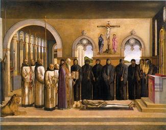 | Keywords: Lazzaro Bastiani - Funeral of St Jerome - WGA1490.jpg between 1470 1472 Oil on canvas size cm 209 263 Institution Gallerie dell'Accademia Venice object history credit line accession number WGA link 1490 http //www wga hu/art/b/bastiani/jerome2 jpg http //www wga hu/html/b/bastiani/jerome2 html PD-old-100 painting religious Italian 1451-1500 Lazzaro Bastiani Italian paintings in the Accademia Galleries Venice 15th-century paintings of Saint Jerome WGA form painting WGA type religious WGA School Italian WGA time period 1451-1500 |