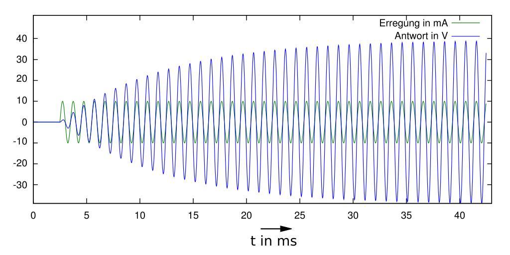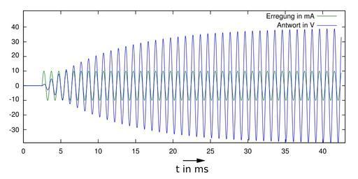 | Keywords: Lc-kreis f force 1000 R p 4000.svg de de Einschwingvorgang Own Biezl Image Lc-kreis f force 1100 R p 4000 svg GNU Octave <source lang MATLAB > Biezl 2008 Eingang Strom Ausgang Spannung f_res 1000 1 kHz f_force 1005 1 1 kHz f_res 1 / 2 pi sqrt L C C 1/L 1/ 2 pi f_res 2 L 20 e-3 20 mH C 1 25e-6 1 25 uF C 1/L 1/ 2 pi f_res 2 R_p 4000 Ohm i_max 10 e-3 10 mA tStep 1000 f_res tStep 25 e-6 50 us steps 40 40 40 Waves iErregung i_max sin 2 pi f_force tStep 0 1 steps-1 ; offset 100; iErregung zeros 1 offset iErregung; Speichergrößen I_L 0; U_C 0; dataU_C zeros 1 steps+offset ; for i offset 1 steps+offset-1 I_C iErregung 1 i+1 - I_L - U_C/R_p; deltaU_C I_C tStep/C; U_C deltaU_C + U_C; U_L U_C; deltaI_L U_L tStep/L; U_C deltaU_C + U_C; I_L deltaI_L + I_L; U_C dataU_C 1 i+1 U_C; end plot 0 1 steps+offset-1 tStep 1000 iErregung 1000 ;Erregung in mA; \ 0 1 steps+offset-1 tStep 1000 dataU_C ;Antwort in V; ; filename sprintf /lc-kreis_f_force_ i_R_p_ i ps f_force R_p ; printf filename print filename -dps2 -landscape ; pause </source> Post processing Inkscape Check categories 2009 February 12 de wikipedia Einschwingvorgang 3 Acoustics Television technology |
