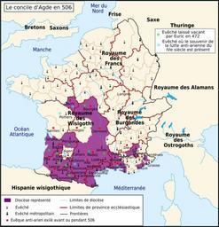 | Keywords: Le concile d'Agde en 506.svg fr Le concile d'Agde en 506 Travail personnel sur un fond de carte hydrographique de historicair D'après Michel Rouche Clovis éditions Fayard 1996 p 300 et Bruno Dumézil La reine Brunehaut éditions Fayard 2008 p 536 Romain0 2010-04-04 Maps of Gauls Maps of the Frankish territory Maps showing 6th-century history SVG maps showing history in French |