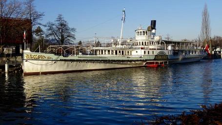 | Keywords: outdoor boat vehicle waterfront water landscape river À Thoune sur le lac du même nom, prêt au départ le 30 décembre 2015. Ce magnifique bateau fut retiré du service en 1971. C'est grâce à un large soutien de nombreux passionnés, que ce patrimoine a pu être sauvé des ferrailleurs, et rénové pour reprendre la navigation en 1992. Fonctionne à la vapeur, comme la plupart des bateaux à aubes des lacs suisses. Elle peut transporter 750 passagers. À Thoune sur le lac du même nom, prêt au départ le 30 décembre 2015. Ce magnifique bateau fut retiré du service en 1971. C'est grâce à un large soutien de nombreux passionnés, que ce patrimoine a pu être sauvé des ferrailleurs, et rénové pour reprendre la navigation en 1992. Fonctionne à la vapeur, comme la plupart des bateaux à aubes des lacs suisses. Elle peut transporter 750 passagers. |