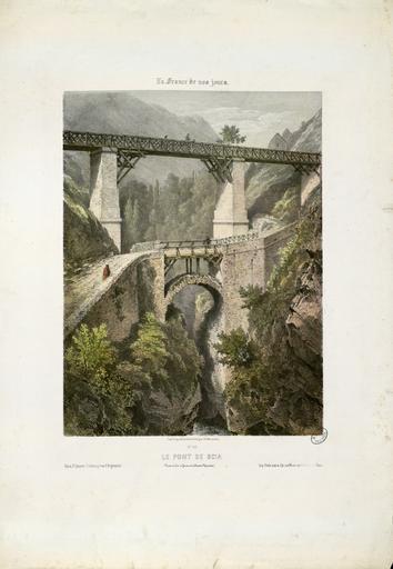 | Keywords: Le Pont de Scia - Route de Luz à Gavarnie (Hautes-Pyrénées) - Fonds Ancely - B315556101 A MERCEREAU 7 025.jpg  Impression en 3 coul par Frick frères à Paris Fait partie d'un ensemble de recueils de lithographies de Mercereau composés de lithographies provenant de La France de nos jours vaste suite publiée par livraisons de 1853 à 1876 et comprenant 475 planches en deux tirages l'un à deux teintes noir et bistre l'autre en couleurs Les libraires ont réuni ces planches en albums de composition variable quant au nombre de planches et aux dessinateurs Asselineau Mercereau Maurice Deroy etc Un titre Les Pyrénées par Ch Mercereau; Bagnères-de-Luchon par Ch Mercereau était frappé sur le plat supérieur de la reliure de l'album ainsi que le nom du Libraire pour lequel il était réalisé La plupart des recueils de ces planches pyrénéennes portent le nom de Sajous libraire à Bagnères-de-Luchon Pl 1 à 18 numérotées de 370 à 386 Pl 374 pl 5 et 6 en double -- Pl 19 20 et 21 numérotées respectivement 407 415 et 418 Ces trois pl ont été dessinées et lithographiées par Asselineau -- Pl 22 23 et 24 numérotées 438 439 et 440 -- Pl 22 lith par Aubrun -- Pl 25 numérotée 441 -- Pl 26 à 40 numérotées de 327 à 341 -- Pl 41 à 46 numérotées de 363 à 368 -- Pl 47 numérotée 369 -- Pl 48 num 292 -- Pl 49 et 50 num 264 et 265 -- Pl 51 et 52 num 268 et 269 -- Pl 53 à 55 num de 293 à 295 -- Pl 56 num 300 -- Pl 57 à 59 num de 307 à 309 -- Pl 60 à 70 num de 316 à 326 -- Pl 71 num 63 dessin et lith d'Asselineau imprimerie Destouches -- Pl 72 et 73 num 87 et 88 dessin et lith d'Asselineau imprimerie Destouches -- Pl 74 num 124 signée Lebreton éditée chez Lalonde à Paris et imprimée chez Becquet frères à Paris -- Pl 75 num 161 dessin et litho d'Asselineau imprimerie Destouches --Pl 76 à 78 num de 207 à 209 -- Pl 79 à 81 num de 211 à 213 -- Pl 82 num 220 dessin et lith de Maurice imprimerie Destouches -- Pl 83 à 86 num de 226 à 229 -- Pl 87 et 88 num 234 et 235 -- Pl 89 à 91 num de 273 à 275 -- Pl 92 et 93 num 290 et 291 Pièces jointes 6 pl sépia dont certaines sont des doubles du recueil de Mercereau Les cinq premières planches sont numérotées respectivement 318 321 324 331 386 La dernière planche n'est pas extraite de La France de nos jours mais de L'Espagne pittoresque et monumentale Ces six planches sont signées Mercereau éditées chez Sinnet et imprimées chez Frick frères Ancely René 1876 - 1966 Possesseur fre public domain domaine public B315556101_A_MERCEREAU_7_025 jpg image/jpeg 1 f de pl lithogr ; 45 cm Frick frères Imprimeur Sinnet F Éditeur http //numerique bibliotheque toulouse fr/collect/general/index/assoc//ark /74899/B315556101_A_MERCEREAU_7_025 dir/B315556101_A_MERCEREAU_7_025 jpg Bibliothèque municipale de Toulouse A-MERCEREAU 7-25 Creator Charles Mercereau http //catalogues toulouse fr/web2/tramp2 exe/do_keyword_search/log_in setting_key BMT1 servers 1home query p001649 St Jean-de-Luz intérieur de l'Eglise St Jean-de-Luz le Château de l'Infante Biarritz Vue générale prise du Phare Château de Mauvesin près Bagnères-de-Bigorre Hautes Pyrénées Bagnères de Bigorre Hautes Pyrénées - Intérieur de l'Eglise des Carmes en couleurs Bagnères de Bigorre Hautes Pyrénées - Intérieur de l'Eglise des Carmes Bagnères-de-Bigorre - Eglise et couvent des Carmes Bagnères-de-Bigorre Hautes-Pyrénées - Tour des Jacobins Cascade et Pont de Magenta Vallée de l'Esponne Hautes Pyrénées Cascade de Trémes-Aïgues Vallée de Grip Hautes Pyrénées St Sauveur Hautes Pyrénées - Le Pont Napoléon Bayonne - Eglise St André Arreau et la Vallée d'Aure Hautes Pyrénées - Vue prise au dessus de la route du Col d'Aspin Auch - Vue prise sur les bords du Gers Auch - Vue de la Cathédrale Auch - Intérieur de la Cathédrale Bagnères-de-Bigorre - Vue Générale prise de la Fontaine ferrugineuse Eaux-Bonnes Basses-Pyrénées - L'établissement Thermal et la Chapelle Nantes - Vue de l'Eglise Ste Croix Le Croisic - Plage des Baigneurs et Etablissement de Bains Le Folgoët - Vue de l'Eglise Brèche de Roland prise de Gèdres Hautes Pyrénées Eglise des Templiers à Luz Chapelle du couvent de Pouëlahun i e Pouey Lahun - Vallée d'Azun Hautes Pyrénées Vue de l'établissement de la Raillière près Cauterets Hautes-Pyrénées Vue générale de Cauterets prise du Mamelon Vert Hautes-Pyrénées Vue du Fort de Lourdes Hautes-Pyrénées Vue d'Argelès-de-Bigorre Hautes-Pyrénées Vue de St Sauveur Hautes-Pyrénées Le Pas de l'Echelle Route de Gavarnie Hautes-Pyrénées Fond de la Vallée d'Argelès prise de la terrasse de St Savin Hautes-Pyrénées Place Grammont à Pau Basses-Pyrénées Vue générale des Eaux-Bonnes Basses-Pyrénées Barèges et la Vallée du Bastan Hautes-Pyrénées Chute supérieure du Pont d'Espagne Hautes-Pyrénées La grotte miraculeuse à Lourdes Hautes-Pyrénées Eglise de Bétharram et Pont de Lestelle Basses Pyrénées Cascade du Cerizet Près Cauterets Hautes-Pyrénées Pic du Midi d'Ossau 2885m Basses Pyrénées - Vue prise du 3e plateau de Bious-Artigues Pau - Vue prise de la terrasse du Château Toulouse - Cloître du Musée Galerie du Moyen-Age Pau - Vue du Château prise du Parc Toulouse - Cloître du Musée et Clocher des Augustins Toulouse - La maison de pierre fragment de la façade Toulouse - Intérieur de St Sernin St Jean-de-Luz Fort du Socoa Toulouse - Vue du Capitole Bordeaux Vue de la Porte du Caillau i e Cailhau Bordeaux Porte de la grosse Cloche Bordeaux Vue des Quinconces Bordeaux - Vue de la Tour et de l'Eglise de St Michel Toulouse - Vue du Pont de pierre prise du Quai de Brienne Toulouse - Abside de l'Eglise de St Sernin de l'an 1097 Toulouse - Choeur de la Cathédrale St Etienne Rouen - Hôtel de Bourgtheroulde Biarritz - Vue des Bains Napoléon et du Casino Biarritz - Vue des Bains du Port Vieux Biarritz - Vue de l'Entrée de la Ville à l'arrivée de Bayonne Le Lac Bleu Hautes-Pyrén
