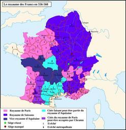 | Keywords: Le royaume des Francs en 556-560.svg fr Le royaume des Francs en 556-560 Travail personnel sur un fond de carte hydrographique de historicair D'après Michel Rouche L'Aquitaine des Wisigoths aux Arabes École des Hautes Études en Sciences Sociales Jean Touzot 1979 p 65 Romain0 2009-11-23 Maps of Gauls Maps of the Merovingian territory SVG maps showing history in French |