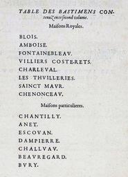 | Keywords: Le second volume des plus excellents Bastiments de France - Table of Contents - INHA 2005.jpg Jacques I Androuet du Cerceau http //www purl org/yoolib/inha/363 INHA Creator Jacques I Androuet du Cerceau 1579 Le second volume des plus excellents Bastiments de France 2 Title pages from France Title pages in French PD-old-100 | ||||