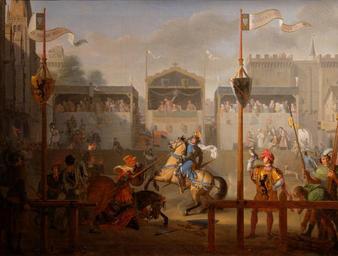 | Keywords: Le tournoi-Pierre Révoil-MBA Lyon.jpeg Artwork creator Pierre-Henri Révoil fr Lors d'une joute à Rennes en 1337 un chevalier inconnu triomphe de tous ses adversaires l'un d'eux parvient à soulever la visière de son heaume Il s'agit de Bertrand Du Guesclin à qui son père avait interdit de participer à ce tournoi 1812 Oil on canvas Size cm 133 174 institution Musée des Beaux-Arts de Lyon LangSwitch Paintings department Département des peintures 000PE026334 object history ProvenanceEvent 1839 gift LangSwitch das the au al het Musée des Beaux-Arts de Lyon Pierre-Henri Révoil exhibition history 2014 L'invention du passé Histoires de cÅ“ur et d'épée en Europe 1802-1850 Institution Musée des Beaux-Arts de Lyon credit line place of creation PD-100 http //www mba-lyon fr/mba/sections/fr/collections-musee/peintures/oeuvres-peintures/xixe_siecle/revoil_tournoi_14e startingReq /sections/fr/collections-musee/peintures/oeuvres-peintures/ from_url http 3A//www mba-lyon fr/mba/sections/fr/collections-musee/peintures/departement4598 3Fb_start 3Aint 3D27 Musée des Beaux-Arts de Lyon http //www mba-lyon fr/static/gigapixels/letournoi html Voir le tableau en très haute définition accession number Inv A 164 Musée des beaux-arts de Lyon - Supported by Wikimedia France Le tournoi by Pierre-Henri Révoil Musée des beaux-arts de Lyon - Supported by Wikimedia France ImageNote 1 1635 1152 194 195 3015 2285 2 thumb Du Guesclin découvert ImageNoteEnd 1 ImageNote 2 1494 736 164 198 3015 2285 2 thumb Le cygne d'argent en trophée ImageNoteEnd 2 ImageNote 3 8 23 541 1518 3015 2285 2 thumb L ™Ã©glise Saint Nizier de Lyon ImageNoteEnd 3 ImageNote 4 2215 1255 293 385 3015 2285 2 thumb L'oliphant ImageNoteEnd 4 |