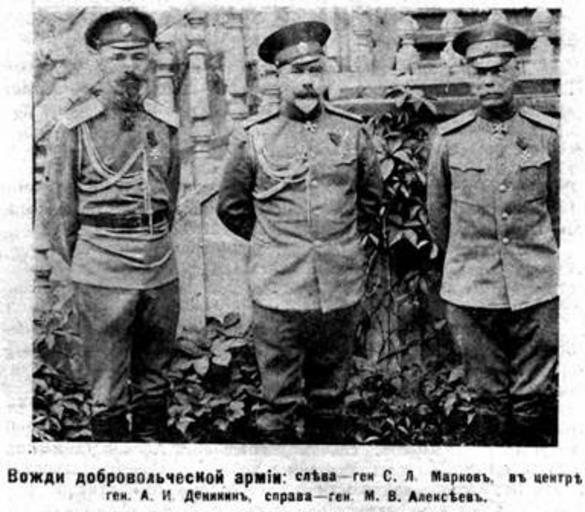 | Keywords: Leaders of voluntary army, Markov, Denikin, Alekseev.jpg Доб овольческой а мии а фото слева нап аво С Л а ков А И Деникин В Алексеев may 1917 modificied in 1918 http //files pobeda ru/images/kalendar/dobrovol_armia_3-1 jpg author PD-Russia-2008 Uploaded with UploadWizard Anton Denikin Sergey Markov general Mikhail Alekseev Mogilyov |