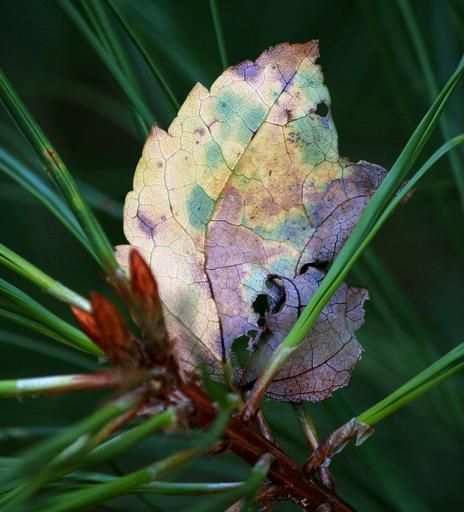 Keywords: leaf autumn fall colors colorful stuck pine tree branch nature