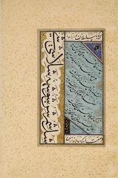 | Keywords: Leaf calligraphy Met 1982.120.4.jpg Leaf of calligraphy Timurid artwork Feuille de calligraphie century 16 watercolor opaque ink gold parchment Institution Metropolitan Museum of Art Department of Islamic Art gallery 455 140010573 object history from Iran Provenance Iran credit line purchase through Mr and Mrs Jerome A Straka's gift 1982 accession number 1982 120 4 Marie-Lan Nguyen 2011 PD-old-100 other versions assessments 1 Safavid art 16th-century illuminated manuscripts Islamic manuscripts in the Metropolitan Museum of Art Taken with Nikon D300s Taken with Sigma 17-50mm F2 8 EX DC OS HSM |