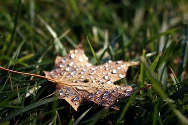 Keywords: leaf droplets season autumn fall brown water rain wet grass meadow fallen macro bright dew nature flora freshness dewdrop