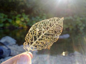 Keywords: leaf framework structure scaffolding dry leaf veins hand fingers nature wilderness plant sunlight decomposed