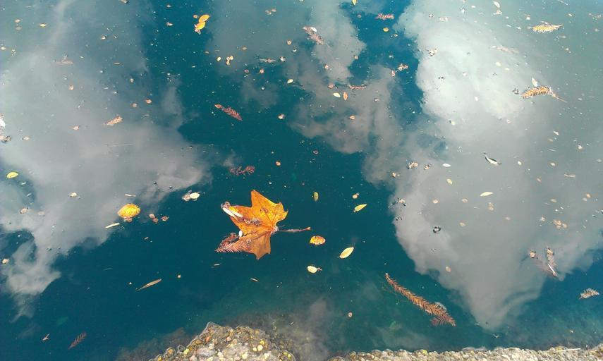 Keywords: leaf reflection water nature season lake drop park pond floating outdoors