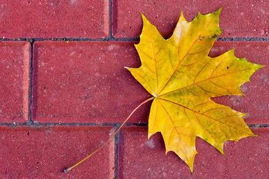 Keywords: leaf yellow autumn maple fall nature vibrant foliage decoration season golden fall leaves red contrast brick