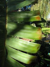 Keywords: leafy leaves green banana plants flora tropical trees torn foliage sunny sunlight bright banana leaves
