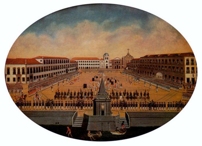 | Keywords: Leandro Joaquim - Revista Militar no Largo do Paço.jpg Artwork Creator Leandro Joaquim Military Review at the Largo do Paço Palace Square Revista Militar no Largo do Paço ~ 1790 Oil on canvas cm 111 139 Museu Histórico Nacional Rio de Janeiro Brazil http //www raulmendesilva pro br/pintura/pag005 shtml PD-old-100 Other versions Paintings of Rio de Janeiro city Paintings in the Museu Histórico Nacional 18th-century paintings from Brazil Baroque paintings from Brazil Paintings by Leandro Joaquim in the Museu Nacional de Belas Artes Cityscape paintings in the Museu Nacional de Belas Artes |