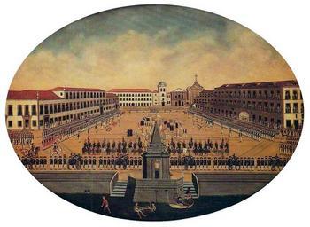 | Keywords: Leandro Joaquim - Revista militar no Largo do Paço.JPG Artwork Creator Leandro Joaquim Revista Militar no Largo do Paço Military Review at the Largo do Paço Palace Square ~ 1790 Oil on canvas cm 111 139 Museu Histórico Nacional Rio de Janeiro Brazil Scan from GODOY Solange de Sampaio ed Museu Histórico Nacional São Paulo Banco Safra 1989 PD-old-100 Other versions <gallery> File Leandro Joaquim - Revista Militar no Largo do Paço jpg </gallery> Paintings in the Museu Histórico Nacional Baroque paintings from Brazil Paintings of Rio de Janeiro city Military history of Brazil 18th-century paintings from Brazil Paintings by Leandro Joaquim in the Museu Nacional de Belas Artes |
