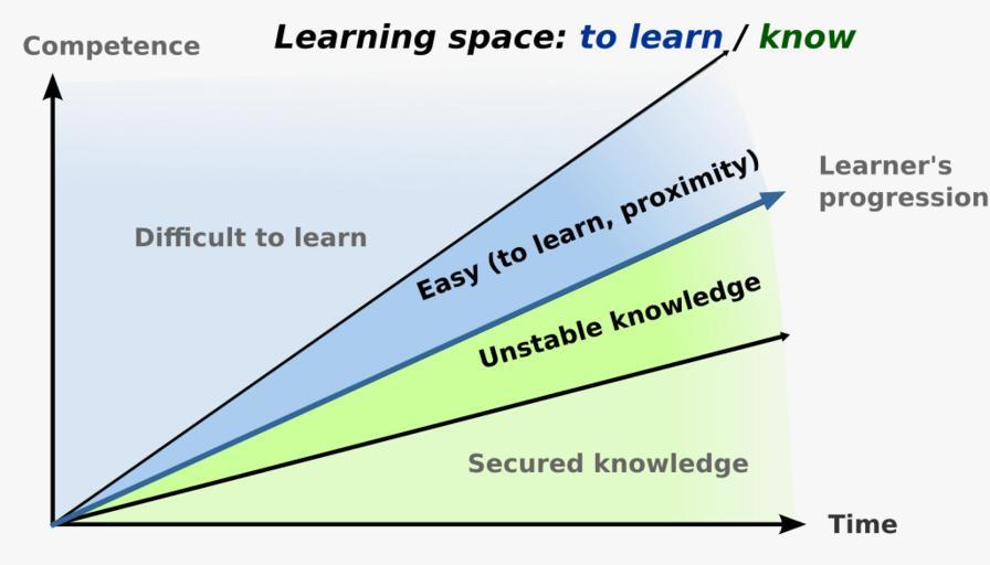 Keywords: Learning curve.svg en Level/Time of competence when learning <br /> Know space secured knowledge more solid / unstable knowledge to review <br /> Space still to learn can be divided into easy to learn proximity / hard-difficult to learn Note I don't remember from where this theory come from and what is its real name If you know please add the source own Yug see upload date Learning Language learning Memory |