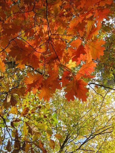 Keywords: leaves autumn emerge orange golden bright translucent oak leaves